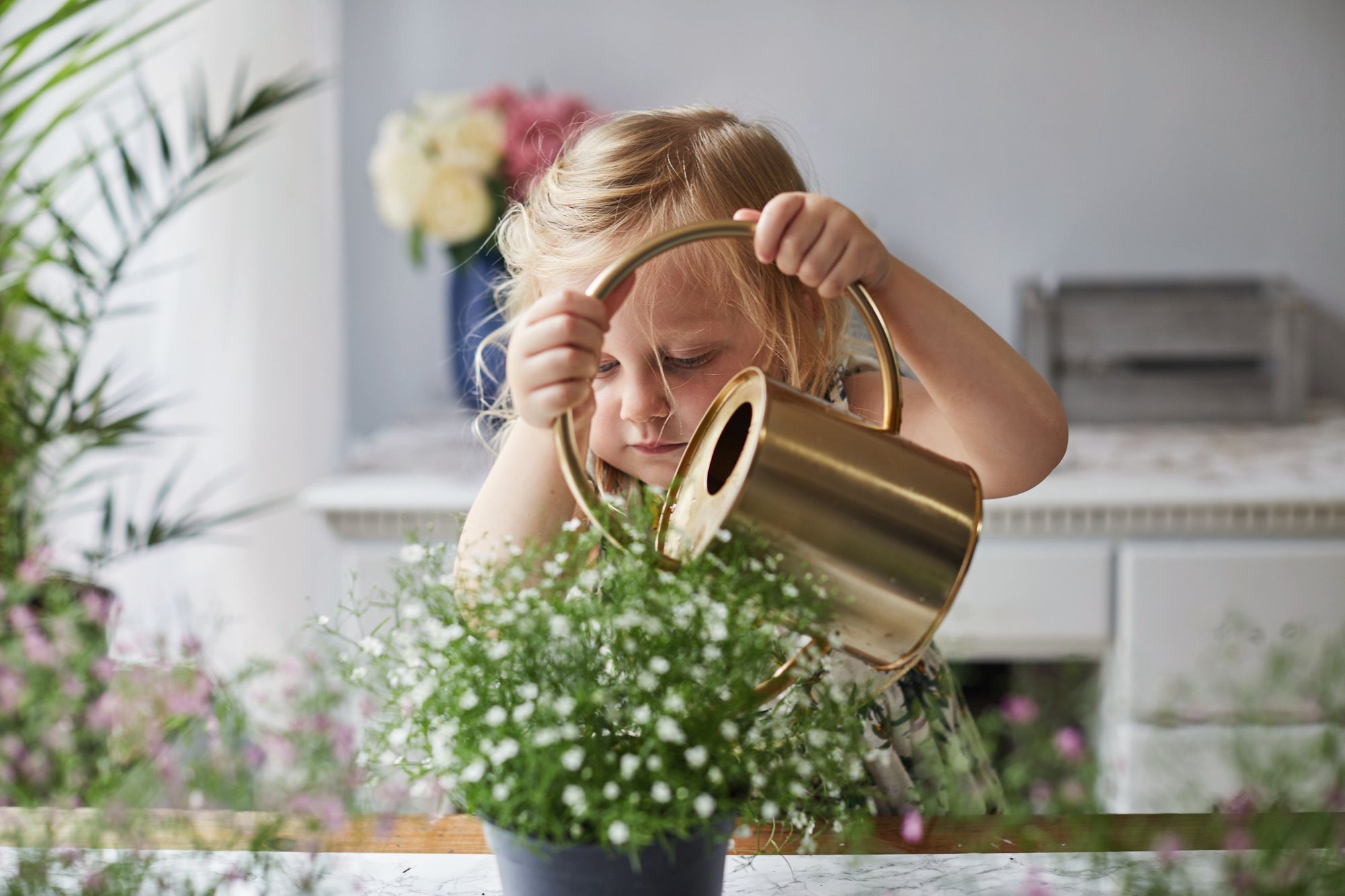 Legen Sie Wert darauf und bringen Sie etwas von Mutter Natur in Ihr Haus, indem Sie Pflanzen im Raum einführen. Blumen und Grün sorgen für zusätzliche Freude und machen Ihr Haus lebendiger. Sie können auch Holz verwenden, ein grundlegendes Element des Hygge-Designs, da es den Eindruck erweckt, geerdeter zu sein.